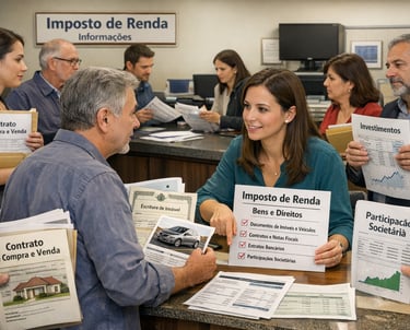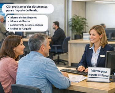 Informes de bancos e corretoras (aplicações financeiras, poupança, dividendos, juros). No aplicativo do seu Banco, localize “Informe para Imposto de Renda”